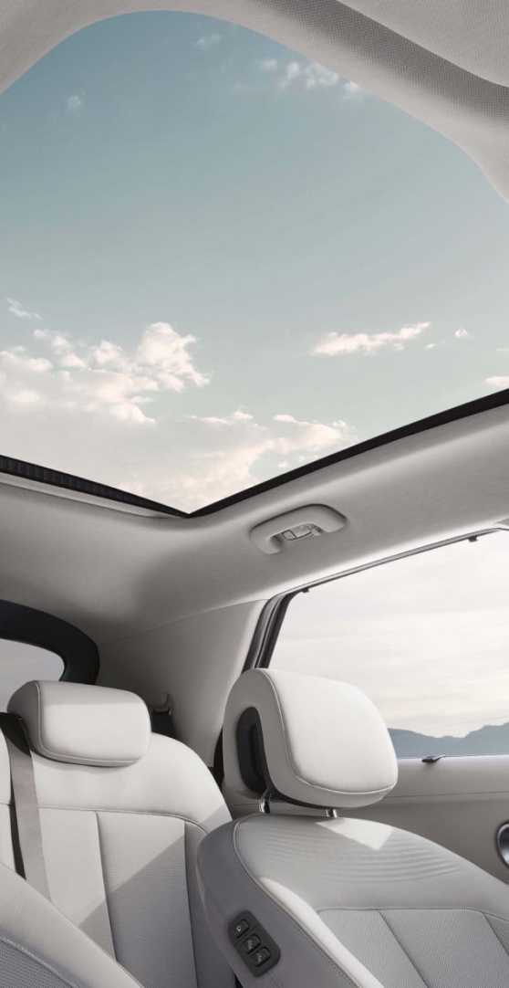 *(Voyage WLTCモード/自社測定値)テュフラインランドが実施しRDWが承認した自社測定値。一部テスト車両は日本仕様と細部で異なりますので、参考値となります。電気自動車は走り方や使い方、使用環境などによって、数値は大きく異なります。 ※画像はLoungeグレードです。